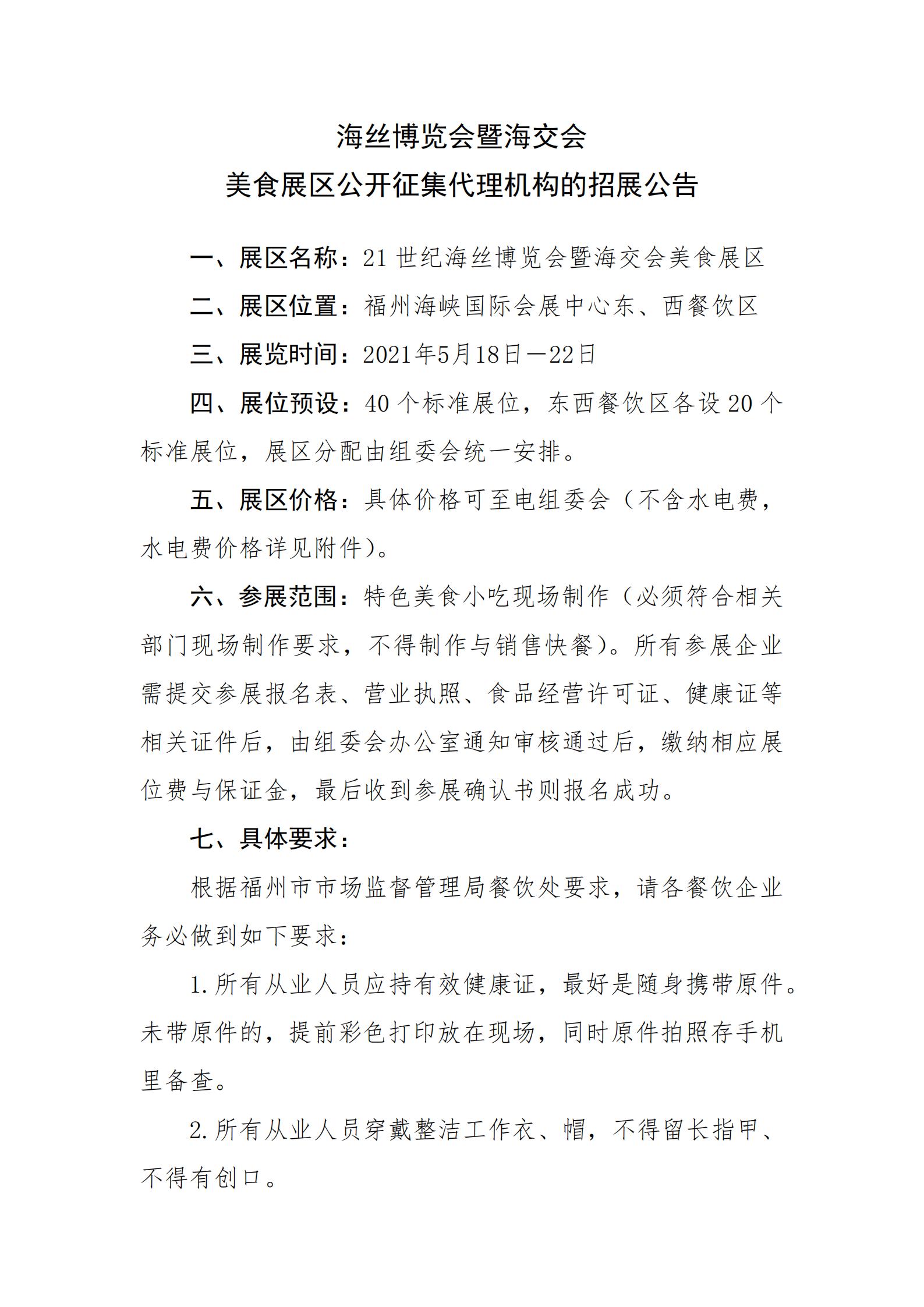 海丝博览会暨海交会美食展区公开征集代理机构的招展公告