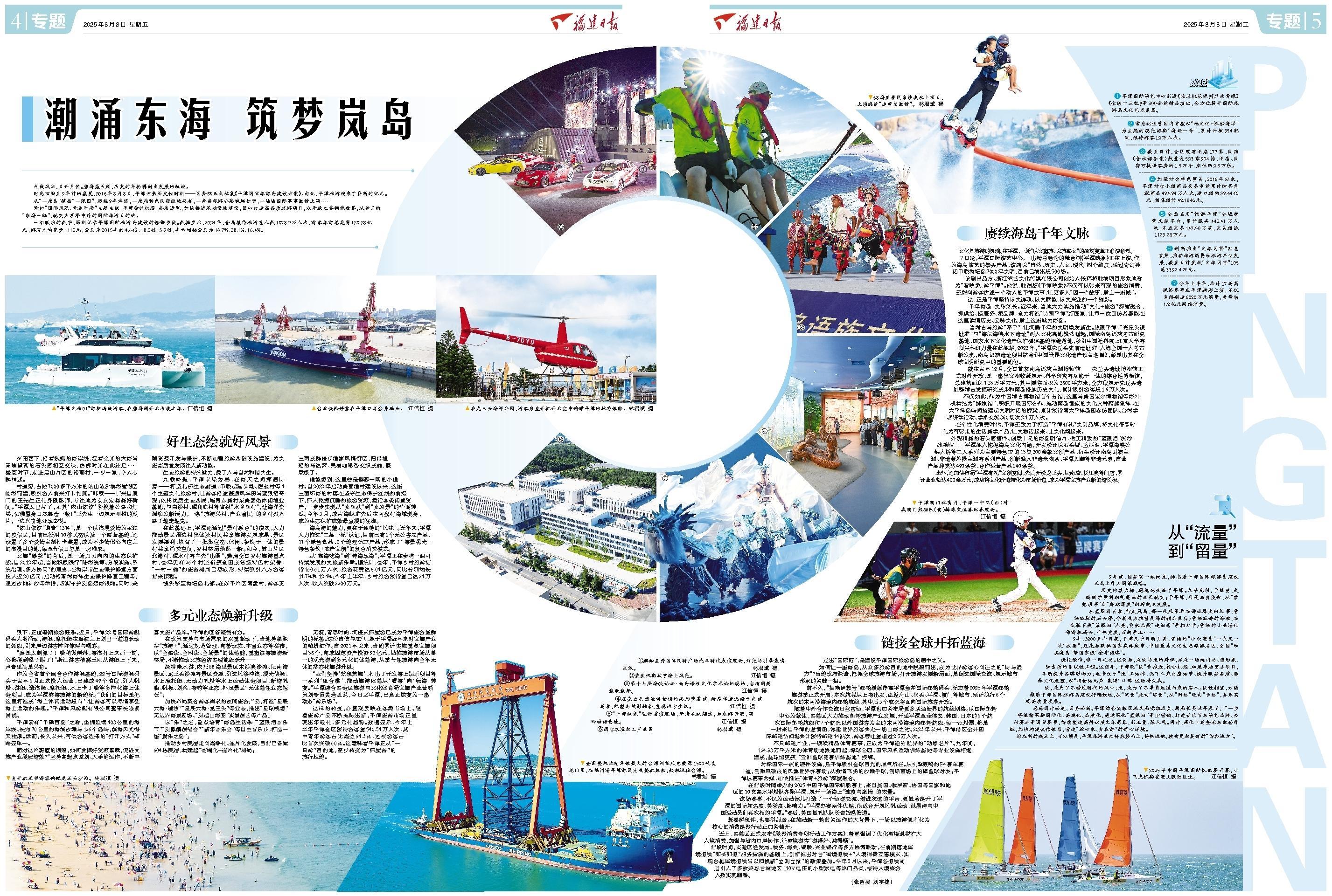 九载风华,日升月恒。碧海蓝天间,历史的年轮镌刻出发展的轨迹。 时光回溯至9年前的盛夏,2016年8月8日,平潭迎来历史性时刻——国务院正式批复《平潭国际旅游岛建设方案》。由此,平潭旅游迎来了崭新的纪元。 从“一座岛”擘画“一张图”,历经9年淬炼,一座座特色民宿拔地而起,一条条旅游公路蜿蜒如带,一场场国际赛事激情上演…… 紧扣“国际风范、青春时尚”主题主线,平潭抢抓机遇、奋发进取,加快推进基础设施建设,匠心打造高品质旅游项目,以开放之姿拥抱世界,从昔日的“东海一隅”,蜕变为享誉中外的国际旅游目的地。 一组跃动的数字,深刻记录平潭国际旅游岛建设的铿锵步伐。数据显示,2024年,全岛接待旅游总人数1078.9万人次,游客旅游总花费120.28亿元,游客人均花费1115元,分别是2015年的4.6倍、18.2倍、3.9倍,年均增幅分别为18.7%、38.1%、16.4%。 好生态绘就好风景 夕阳西下,沿着蜿蜒的海岸线,泛着金光的大海与青墙黛瓦的石头厝相互交映,仿佛时光在此驻足……盛夏时节,走进君山片区的裕藩村,一步一景,令人心醉神迷。 村道旁,占地7000多平方米的依山依汐滨海度假区临海而建,吸引游人前来打卡拍照。“咔嚓——!”来自厦门的王先生正化身摄影师,专注地为女友定格美好瞬间。“平潭太出片了,尤其‘依山依汐’紧挨着公路和灯塔,仿佛置身日本镰仓一般!”王先生一边展示刚拍的照片,一边兴奋地分享喜悦。 “依山依汐”谐音“1314”,是一个以浪漫爱情为主题的度假区,目前已投用10栋民宿以及一个露营基地,还设置了多个爱情主题打卡装置,成为不少情侣心向往之的浪漫目的地,每至节假日总是一房难求。 文旅“爆款”的背后,是一场刀刃向内的生态保护战。自2012年起,当地积极践行“陆海统筹、分段实施、系统治理、多方协同”的理念,在海岸带生态保护修复方面投入近20亿元,启动裕藩湾海洋生态保护修复工程等,通过沙滩补沙等举措,切实守护岚岛碧海银滩。同时,兼顾资源开发与保护,不断加强旅游基础设施建设,为文旅高质量发展注入新动能。 生态旅游的持久魅力,源于人与自然和谐共生。 九载耕耘,平潭以绿为墨,在海天之间挥洒诗意——打造北部生态廊道,串联起猫头墘、后垄村等4个主题文化旅游村,让游客沿途邂逅风车田与蓝眼泪奇观;依托优质生态基底,培育东美村东美嘉佑休闲渔业基地,与白沙村、磹角底村等省级“水乡渔村”,让海洋资源焕发新活力,一条“旅游兴村、产业富民”的乡村振兴路子越走越宽。 在此基础上,平潭还通过“景村融合”的模式,大力推动景区周边村集体及村民共享旅游发展成果、景区发展福利,培育了一批集住宿、休闲、餐饮于一体的景村共享消费空间,乡村格局焕然一新。如今,君山片区北港村、磹水村等率先“出圈”,荣膺全国乡村旅游重点村,去年更有26个村庄斩获全国或省级特色村荣誉,“一村一韵”的旅游格局已然成形,持续吸引八方游客前来探秘。 镜头移至海坛岛北部。在苏平片区南盘村,游客正三两成群漫步渔家风情街区,归港渔船的马达声、民宿咖啡香交织成韵,惬意极了。 谁能想到,这里曾是僻静一隅的小渔村。自2022年启动美丽渔村建设以来,这座三面环海的村落在坚守生态保护红线的前提下,深入挖掘沉睡的旅游资源,盘活各类闲置资产,一步步实现从“卖渔获”到“卖风景”的华丽转型。今年3月,成片海豚群先后在南盘村海域现身,成为生态保护成效最直观的注脚。 海岛游的魅力,更在于独特的“风味”。近年来,平潭大力推进“三品一标”认证,目前已有6个无公害农产品、11个绿色食品、2个地理标志产品,形成了“海景观光+特色餐饮+农产文创”的复合消费模式。 从“靠海吃海”到“养海享海”,平潭正在奏响一曲可持续发展的文旅新乐章。据统计,去年,平潭乡村旅游接待160.61万人次,旅游花费达8.04亿元,同比分别增长11.7%和12.4%;今年上半年,乡村旅游接待量已达21万人次,收入突破2200万元。 多元业态焕新升级 眼下,正值暑期旅游旺季。近日,平潭22号国际游艇码头人潮涌动,游艇、摩托艇在碧波之上划出一道道跃动的弧线,引来岸边游客阵阵惊呼与喝彩。 “真是太刺激了! 船稍微倾斜,海浪打上来那一刻,心都提到嗓子眼了!”浙江游客柳嘉玉刚从游艇上下来,声音里满是兴奋。 作为全省首个闽台合作游艇基地,22号国际游艇码头于去年6月正式投入运营,已建成49个泊位,引入帆船、游艇、造浪艇、摩托艇、水上卡丁船等多样化海上体验项目,成为平潭滨海旅游的新地标。“我们的目标是把这里打造成‘海上休闲运动超市’,让游客可以尽情享受海上运动的乐趣。”平潭和风游艇有限公司董事长陈紫良说。 平潭素有“千礁百岛”之称,坐拥延绵408公里的海岸线、长约70公里的海滨沙滩与126个岛屿,滨海风光得天独厚。然而,长久以来,可供游客选择的“打开方式”却略显单一。 面对这片蔚蓝的馈赠,如何发挥好资源禀赋,促进文旅产业提质增效?“坚持高起点谋划、大手笔运作,不断丰富文旅产品库。”平潭的回答铿锵有力。 在政策支持与市场需求的双重驱动下,当地持续深耕“旅游+”,通过规范管理、完善设施、丰富业态等举措,以“全龄段、全时段、全场景”的体验链,重塑滨海旅游新格局,不断推动文旅经济实现能级跃升—— 深耕亲水游,依托68海里景区东沙澳沙滩、坛南湾景