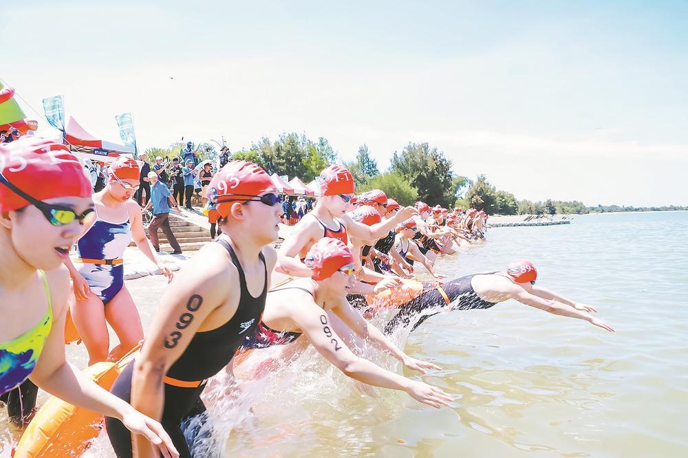 2024年7月21日,200名来自海峡两岸暨港澳地区的游泳好手参加第十二届厦金海峡横渡活动。林梓健 摄