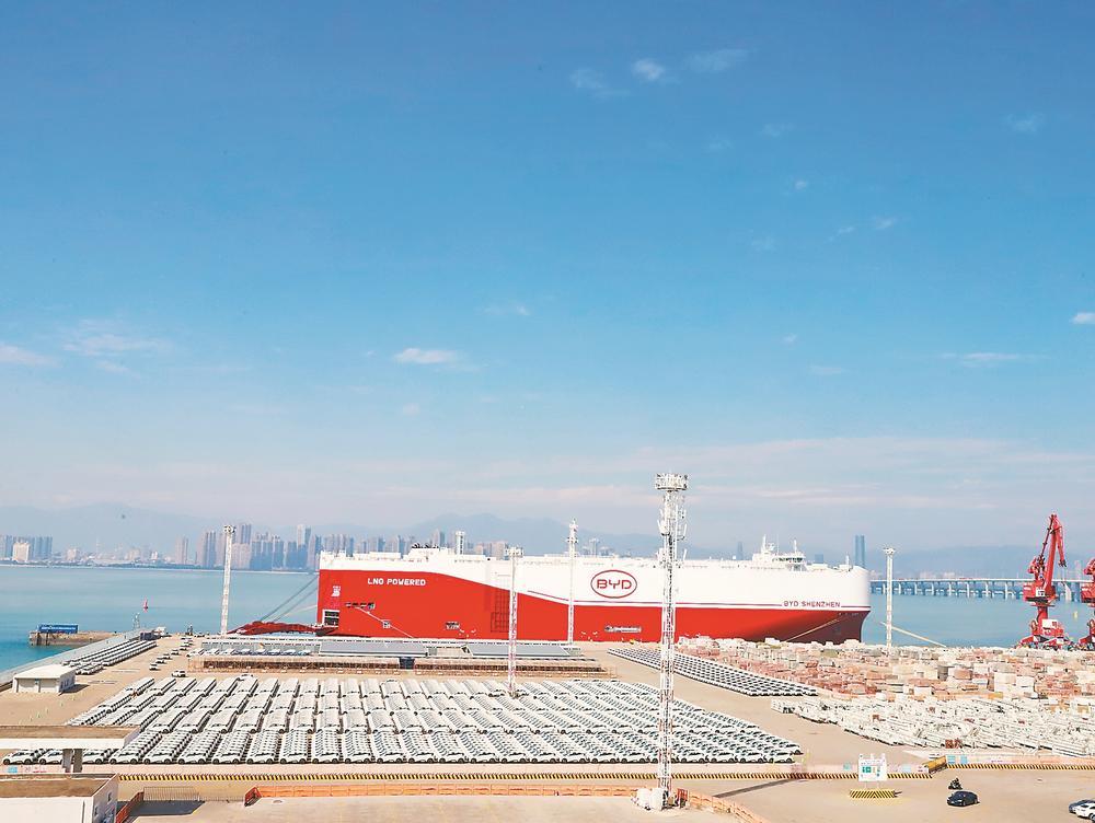近日,在厦门海关所属东渡海关监管下,1768辆比亚迪新能源汽车搭乘比亚迪“深圳号”滚装船从厦门现代码头起航前往墨西哥。 据悉,“深圳号”是比亚迪目前最大的自营汽车运输船,拥有9200个标准车位。该船采用了LNG/燃油双燃料推进系统,首次应用了比亚迪自主研发的厢式电池组与轴带发电机技术,搭配高压岸电系统,能在港口实现装卸货期间的零碳排放。 为保障“深圳号”高效首航,东渡海关提前与码头运营方沟通,量身定制监管方案,提供全天候预约查验服务,并实施“提前申报、抵港直装”等便利化措施,全力确保新能源汽车出口各环节无缝衔接。当日,现代码头同步开通6条作业线,仅用12小时便高效完成了全部1768辆汽车的装船作业,整体运行流畅。 本报记者 廖丽萍 通讯员 杜俊龙 摄影报道 |