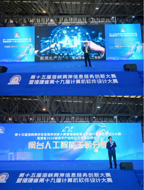 闽台人工智能主题分享 经过激烈角逐,本届大赛最终评选出一等奖21项、二等奖42项、三等奖63项,以及两岸产业融合奖、最佳技术创新奖、最佳市场潜力奖等5个最佳单项奖。获奖项目中,“基于云边协同的配网无人机辅助工程验收系统”“智弈沙盘——AI Agent驱动的动态攻防推演靶场平台”等项目,聚焦产业实际需求,可直接应用于工程建设、网络安全防护等领域;“福建水利‘千库联调’数字孪生应用”“基于深度学习的光学楔形片自动对焦瑕疵检测”等项目,实现技术与民生服务、工业生产深度融合,具备广阔市场应用前景。