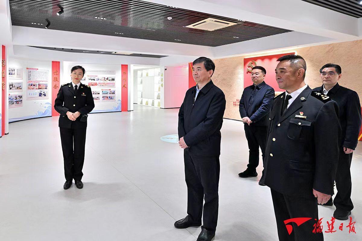 16日,周祖翼在马尾海关调研。 马尾海关监管服务超7000家进出口企业,监管的货运航班一半以上往来海峡两岸。周祖翼走进这里,察看了“马上就办、真抓实干”海关党建馆,来到快速验放中心、报关大厅,深入了解智慧海关建设、外贸进出口、便捷通关、跨境电商监管和支持企业进出口贸易举措落实等情况,并看望慰问一线工作人员,勉励他们不断精进业务、练就“火眼金睛”本领,加速验放、把好关口。周祖翼说,守国门、促发展是海关的职责使命。要牢记嘱托,进一步提高监管效能和服务水平,优化进口商品通关流程,提升查验效率,支持企业开拓新兴市场,促进出口商品转内销,推动跨境电商等新业态新模式加快发展,深化对台贸易便利化改革,持续优化营商环境,不断健全风险防控体系,切实筑牢国门安全屏障,助推福建经济社会高质量发展。