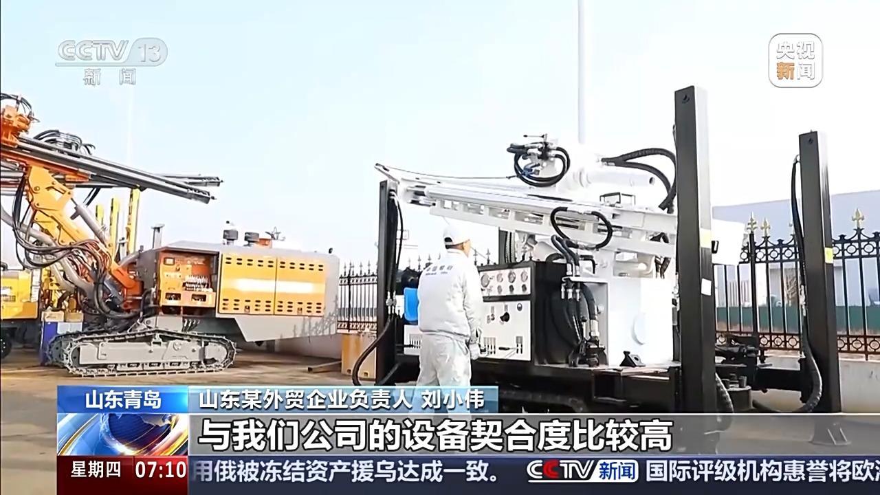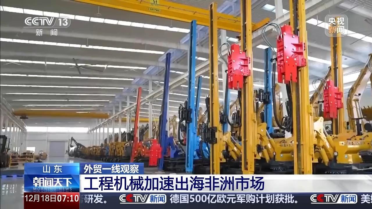 宁波海关所属鄞州海关查检一科副科长 孙向磊:我们通过全天候预约通关服务,持续跟踪国际标准动态和进口国技术要求,提升企业产品合规出口能力,为企业打造通关“绿色通道”,提升国际竞争力 。 工程机械加速出海非洲市场 在共建“一带一路”倡议与中非合作深化的大背景下,我国与非洲贸易发展迅速。随着非洲国家基础设施建设的增加,非洲市场对基建材料、工程机械等需求不断提升。我国企业抢抓机遇,努力拓展非洲市场。今年前11个月,我国与非洲进出口2.25万亿元,同比大幅增长18.7%,成为我国外贸多元化布局中的亮眼增长点。 近日,山东济宁的一批凿井机械即将装车从青岛港运往非洲的尼日利亚。