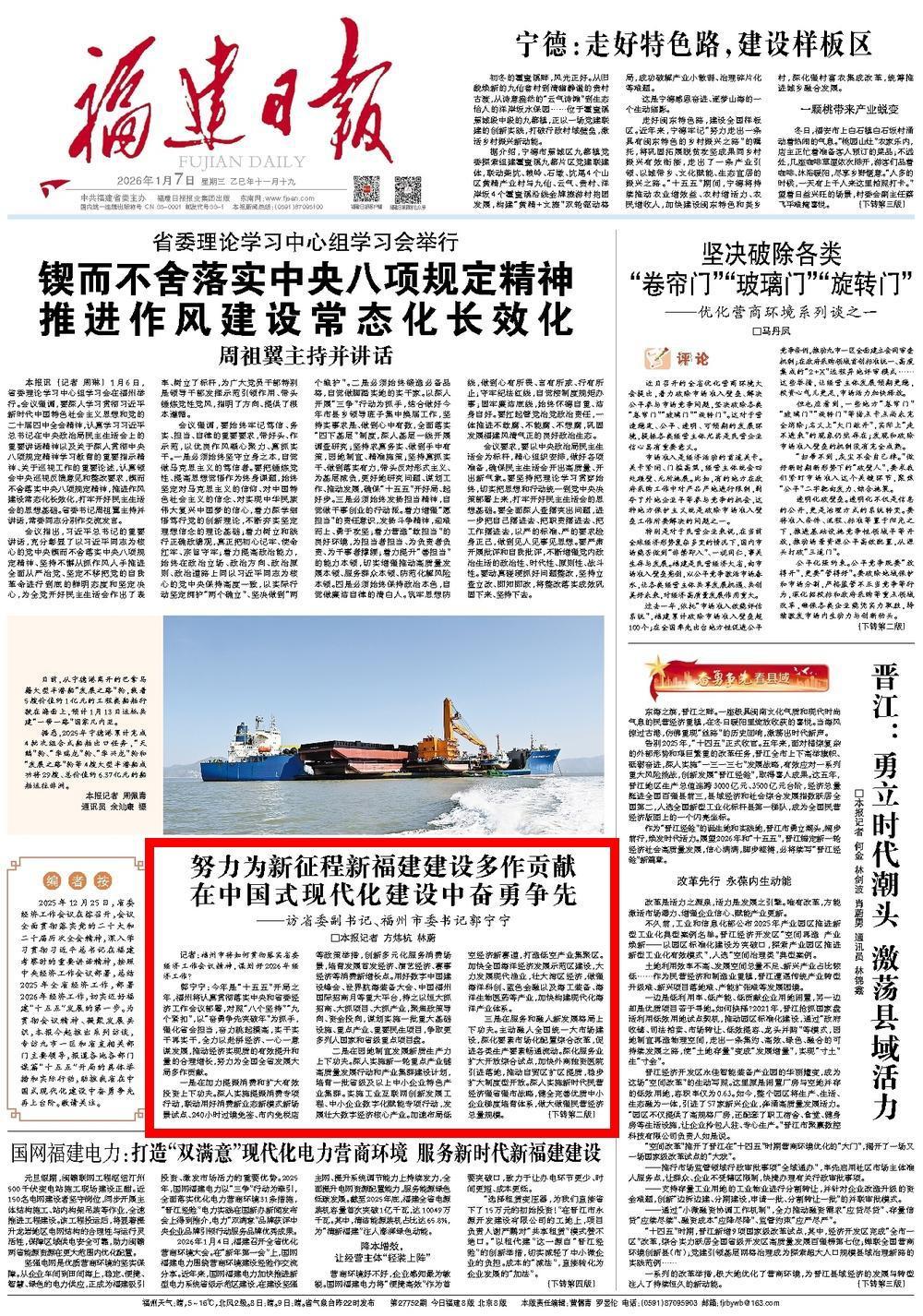 努力为新征程新福建建设多作贡献 在中国式现代化建设中奋勇争先 ——访省委副书记、福州市委书记郭宁宁 记者:福州市将如何贯彻落实省委经济工作会议精神,谋划好2026年经济工作? 郭宁宁:今年是“十五五”开局之年,福州将认真贯彻落实中央和省委经济工作会议部署,对照“八个坚持”“九个紧扣”,以“奋勇争先突破年”为抓手,强化省会担当,奋力跳起摸高,实干实干再实干,全力以赴拼经济、一心一意谋发展,推动经济实现质的有效提升和量的合理增长,努力为全国全省发展大局多作贡献。 一是在加力提振消费和扩大有效投资上下功夫。深入实施提振消费专项行动,联动用好消费新业态新模式新场景试点、240小时过境免签、市内免税店等政策举措,创新多元化服务消费场景,培育发展首发经济、演艺经济、赛事经济等消费新增长点。用好数字中国建设峰会、世界航海装备大会、中国福州国际招商月等重大平台,持之以恒大抓招商、大抓项目、大抓产业,聚焦政策导向、资金投向,谋划实施一批重大基础设施、重点产业、重要民生项目,争取更多列入国家和省级重点项目盘。 二是在因地制宜发展新质生产力上下功夫。深入实施新一轮重点产业链高质量发展行动和产业集群建设计划,培育一批省级及以上中小企业特色产业集群。实施工业互联网创新发展工程、中小企业数字化赋能专项行动,发展壮大数字经济核心产业。加速布局低空经济新赛道,打造低空产业集聚区。加快全国海洋经济发展示范区建设,大力发展现代渔业,壮大湾区经济,做强海洋科创、蓝色金融以及海工装备、海洋生物医药等产业,加快构建现代化海洋产业体系。 三是在服务和融入新发展格局上下功夫。主动融入全国统一大市场建设,深化要素市场化配置综合改革,促进各类生产要素畅通流动。深化服务业扩大开放综合试点,加快外商独资医院引进落地,推动自贸区扩区提质,稳步扩大制度型开放。深入实施新时代民营经济强省强市战略,健全完善优质中小企业梯度培育体系,做大做强民营经济总量规模。落实服务企业“四通四到”机制,深化“高效办成一件事”和涉企服务“一类事”改革,着力解决市场准入和公平竞争、企业创新生态、惠企政策实效等问题,打造能办事、快办事、好办事、办成事的“便利福州”。 四是在努力创造高品质生活上下功夫。深入实施稳岗扩容提质行动,建好用好“福你就业”公共平台,统筹抓好重点群体就业,着力解决结构性就业矛盾。扎实抓好新一年20项56件为民办实事项目,用心用情用力解决教育、医疗、“一老一小”等群众急难愁盼问题,加强普惠性、基础性、兜底性民生建设,着力建设全龄友好型、生育友好型社会。深入实施“生态福地 美丽福州”建设规划纲要和行动方案,加快推进“零碳城市”“无废城市”建设,努力把海滨城市、山水城市建设得更加美好。 记者:“十五五”时期是福州加快建设现代化国际城市、在中国式现代化建设中奋勇争先的关键时期。作为福建省省会,福州市如何在中国式现代化建设中奋勇争先,提升省会城市发展能级和综合竞争力、辐射带动力,为全国、全省发展大局作贡献? 郭宁宁:福州将始终牢记嘱托、感恩奋进,把深入学习贯彻习近平总书记在福建考察时的重要讲话精神,与持续传承弘扬、深入践行习近平总书记在福建福州工作期间开创的重要理念和重大实践紧密结合,坚持“3820”战略工程思想精髓,扭住目标不放松、一张蓝图绘到底,全方位推动高质量发展,加快建设现代化国际城市,努力为新征程新福建建设多作贡献,在中国式现代化建设中奋勇争先。 一是在推动科技创新和产业创新深度融合上持续发力。积极融入全省构建“555X”产业集群,全力推动福州的现代化工、智能汽车、光电信息3大优势产业规模跃升,培育壮大纺织化纤、机械制造、轻工食品、冶金建材、电力能源5大支撑产业,做大做强人工智能、低空装备等8个战略性新兴产业,前瞻布局生物制造、氢能等若干个未来产业。完善教育科技人才一体推进的领导机制和工作机制,持续深化“五链”融合,推动大学城、科学城、高新区、各产业园区联动发展,支持闽都创新实验室、福兴创新实验室争创全国重点实验室,建好用好全国高校区域技术转移转化中心(福建)新型功能材料分中心,深化与清华、北大、人大等校地合作,加快打造全省科技创新策源地。 二是在全面深化改革、扩大高水平开放上持续发力。大力弘扬开拓创新、实事求是、坚韧不拔、顾全大局的改革“四种精神”,持续抓好市委十二届七次全会部署的353项进一步全面深化改革重要举措落地,深化福州新区(长乐区)“区政合一、融合发展”,编制实施福州市开发区总体发展规划,打造一批特色鲜明的标杆园区。扎实推进“丝路海运”港航贸一体化发展,加快“丝路飞翔”“数字丝路”等通道建设,构建海陆空网“四位一体”大通道。高水平打造中印尼“两国双园”、21世纪海上合作委员会、综合保税区等平台,加强产业链供应链国际合作。坚持两岸融合、福州先行,持续优化融合发展制度安排,促进榕台经济融合、社会融合、情感融合、全域融合,加快建设两岸共同市场先行区、两岸共同产业集聚区,打造台胞台企台青登陆第一幸福家园。 三是在推动区域协调发展和城乡融合发展上持