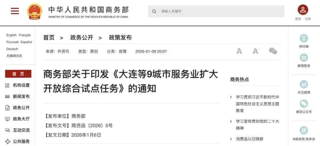 本次试点范围包括大连、宁波、厦门、青岛、深圳、合肥、福州、西安、苏州等全国九座重要城市。 这九座城市将一体落实2025年4月印发的《加快推进服务业扩大开放综合试点工作方案》中所包含的各项试点任务,立足自身区位优势和特色产业禀赋,在电信服务、医疗康养、商贸文旅、金融等多类服务业重点领域大胆突破、先行先试,开展具有个性化的改革创新。 记者获悉,《任务》提出支持福州市融入和服务,福建全方位推动高质量发展,更好支撑两岸融合发展示范区建设,深入推进榕台交流合作,加强两岸经贸民生等领域交流合作,依托中印尼“两国双园”深化双向合作。 具体包括: 支持福州在数字贸易领域先行先试,打造全球数字贸易规则试验田; 支持福州开展数据基础设施创新试点,探索数联网与区块链融合发展; 支持福州医疗领域扩大开放试点,优先支持与台湾地区协作开展细胞治疗类多中心临床研究; 发挥中印尼“两国双园”示范引领作用,鼓励示范园区加快双向贸易发展、加强双边金融互联,促进贸易和投资便利化等等。