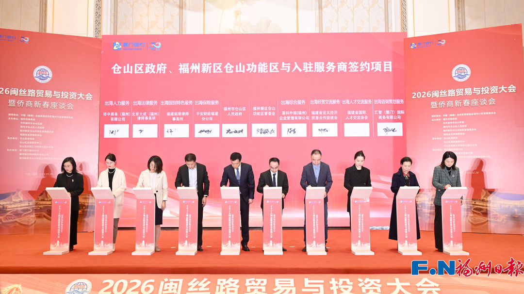 2月28日 福州春雨如丝 悄无声息地润泽着 三江口这片蓄势待发的热土 户外虽有寒意 但会场内 却因一场跨越山海的相聚而暖流涌动 来自美国、加拿大、法国、柬埔寨、日本、乌兹别克斯坦等国家及地区的120余位侨商侨胞,齐聚仓山,踏雨而归。 在第二届侨商供采大会期间,这场由福州自贸片区管委会指导,由福州市商务局、仓山区委区政府、福州新区仓山功能区管委会及福建省自贸国际商会联合主办的2026闽丝路贸易与投资大会暨侨商新春座谈会,不仅是一次乡情的汇聚,更是一次信心的提振,一次“出海”的号角。大会期间,在福建省商务厅指导下,福州市商务局举办了“闽企出海、商务领航”海外闽企新春座谈会。在丙午马年的春雨中,一场政府和侨商侨领的“双向奔赴”,已然启程。