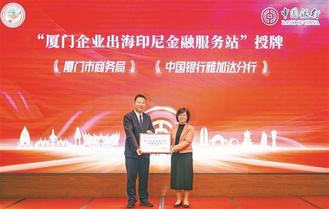 厦门市商务局向中国银行雅加达分行授予“厦门企业出海印尼金融服务站”牌匾。 厦门日报讯(文/记者 严明君 通讯员 周晓燕图/记者 林铭鸿)昨日,由厦门市商务局主办,中国银行厦门市分行、中国银行雅加达分行、厦门市跨国公司发展促进会联合承办的2026年第六期“海联会客厅——厦企出海 行稳致远”暨中国银行“印度尼西亚投资对接会”举行。 会上,厦门市商务局、中国银行厦门市分行、中国银行雅加达分行三方签署战略合作协议,“厦门企业出海印尼金融服务站”正式成立,将合力支持厦企深耕印度尼西亚市场。活动现场还设置了主题演讲和互动环节,政府部门和行业专家就印尼市场准入、金融工具运用、风险防控等热点问题,与参会企业代表进行深入交流,并达成多项合作意向。 境内外资源连通 共建一站式 出海服务平台 2025年10月,商务部等5部门联合印发《关于进一步完善海外综合服务体系的指导意见》(简称《指导意见》),致力于打造央地联动、区域协同、资源集聚、内外贯通的海外综合服务生态,为出海企业参与国际合作与竞争、维护企业海外正当权益提供有力支撑。面对纷繁复杂的局势,市商务局先后出台“厦企出海三年行动方案”“厦企出海‘五个一’工作方案”等系列政策措施,设立百亿级的出海子基金,目前建立了25个海外综合服务工作站,持续赋能企业出海,助力企业在全球竞争中赢得主动、掌握先机。 此次厦门市商务局、中国银行厦门市分行、中国银行雅加达分行达成战略合作,正是三方深入贯彻落实党中央、国务院关于推动高水平对外开放、支持企业“走出去”参与国际竞争与合作的重要部署,以及响应《指导意见》的具体行动。 据悉,该合作整合了厦门市商务局的政策组织优势、中国银行厦门市分行的区域客户服务能力与中国银行雅加达分行的属地服务资源,构建了“政府+境内银行+境外机构”三位一体合作模式,联合打造一站式出海服务平台——“厦门企业出海印尼金融服务站”,为出海企业提供全方位金融及配套服务,助力企业在印尼市场健康发展。 现场,厦门市商务局向中国银行雅加达分行授予了“厦门企业出海印尼金融服务站”牌匾。厦门市商务局党组书记、一级巡视员陈敏表示,将充分发挥厦门对外开放和多区叠加优势,进一步推进海外综合服务体系升级与“金砖(厦门)出海综合服务港”建设,加强与各相关部门、金融机构及海外综合服务站点的协同联动,持续优化营商环境,完善境外投资服务保障机制,为我市企业“走出去”搭建全链条、一站式服务平台,助力厦门企业高质量出海。 精彩主题演讲 破解企业出海关键难题 对接会为到场的100多位企业代表带来了四场精彩的主题演讲,内容覆盖企业出海各关键环节,破解出海中的财税合规、本地化运营与金融资源对接等关键难题。 其中,中国人民银行厦门市分行专家围绕“跨境使用人民币 贸易投资更便利”主题,解读跨境人民币的最新政策、使用场景和发展方向;中国银行雅加达分行代表详细介绍了印尼市场投资环境及中行服务企业出海的综合金融方案,涵盖跨境融资、结算、资金管理、外汇交易等全链条服务。此外,厦门市跨国公司发展促进会和宝淇(厦门)睿程国际商务咨询的专家分享了企业出海实战经验,为企业提供投资布局优化、税务合规、属地化运营等实操指导。 “印尼作为‘一带一路’共建国家,如今已然成为中资出海的热点地区。”中国银行雅加达分行行长孙尚斌表示,依托“厦门企业出海印尼金融服务站”,中国银行厦门市分行、中国银行雅加达分行将为出海企业提供账户结算、授信、外汇管理等金融服务,以及政策咨询、市场对接、合规指导、活动组织等配套服务,更好响应厦企出海印尼发展需求。 发挥全球化优势 打造出海金融服务标杆 中国银行作为全球化程度最高的中资银行,始终牢记“融通世界、造福社会”,将服务国家高水平对外开放作为核心使命。目前,中国银行境外机构已覆盖64个国家和地区,其中在45个“一带一路”共建国家设有分支机构,累计跟进公司授信项目超过1300个,提供授信支持超4000亿美元。 响应政策要求和企业出海需求,中国银行出台了《“十五五”服务企业出海专项工作实施方案》和《中国银行服务企业出海白皮书》。白皮书定位服务企业出海工作,立足国家对外开放政策与企业出海新趋势,依托中国银行全球化优势、综合化特色,系统梳理出海企业“资源配置优化、本地化运营提升、资产权益保障”三大核心需求,为“进出口贸易型”“境外投资型”“对外工程承包与劳务合作型”“区域管理型”和“综合生态型”五类核心“走出去”企业提供专属金融服务方案,以高质量金融服务全方位护航中国企业扬帆出海。 依托中国银行全球化服务网络和跨境金融服务能力,中国银行厦门市分行已建立覆盖全市重点企业的跨境金融服务体系,并与中国银行海外机构形成高效联动机制,在支持厦企全球化布局方面具有丰富经验。中国银行厦门市分行行长刘江南表示,身处“十五五”的历史潮头,中国银行厦门市分行将肩负金融服务出海企业的责任担当,聚焦企业跨境发展的核心需求,加强境内外机构合作,发挥“境内+境外”双轮驱动优势,不断优化服务模式和产品体系,为厦企出海提供专业高效的全球化服务。 聚