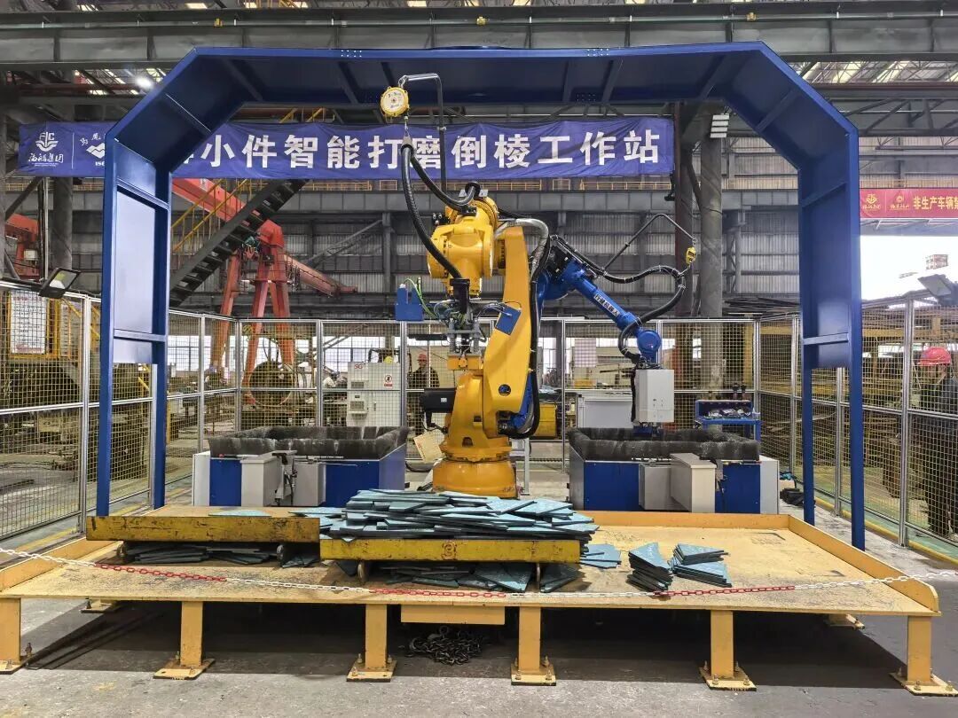 图源:福建船政重工 9000吨特种液货船也在这里成功交付。这是全省首艘获得数字化交付附加标志的船舶。“该船配备了先进的航行与数智化监控系统,不仅以数字化手段向船东完整、准确地移交船舶及船用产品数据,打通了船舶从设计、建造到营运阶段的数据通道,还在航行管理、能效监控、设备运维等方面实现了智能化升级,顺应了全球航运业绿色低碳转型的趋势。”技术人员介绍说。 投用机器人智能设备 些“船”奇的背后 离不开智能化设备与系统的投用 据了解 福建船政实现了 智能焊接、激光切割、 型材切割机器人加工等领域的 多项突破 型材切割机器人生产线