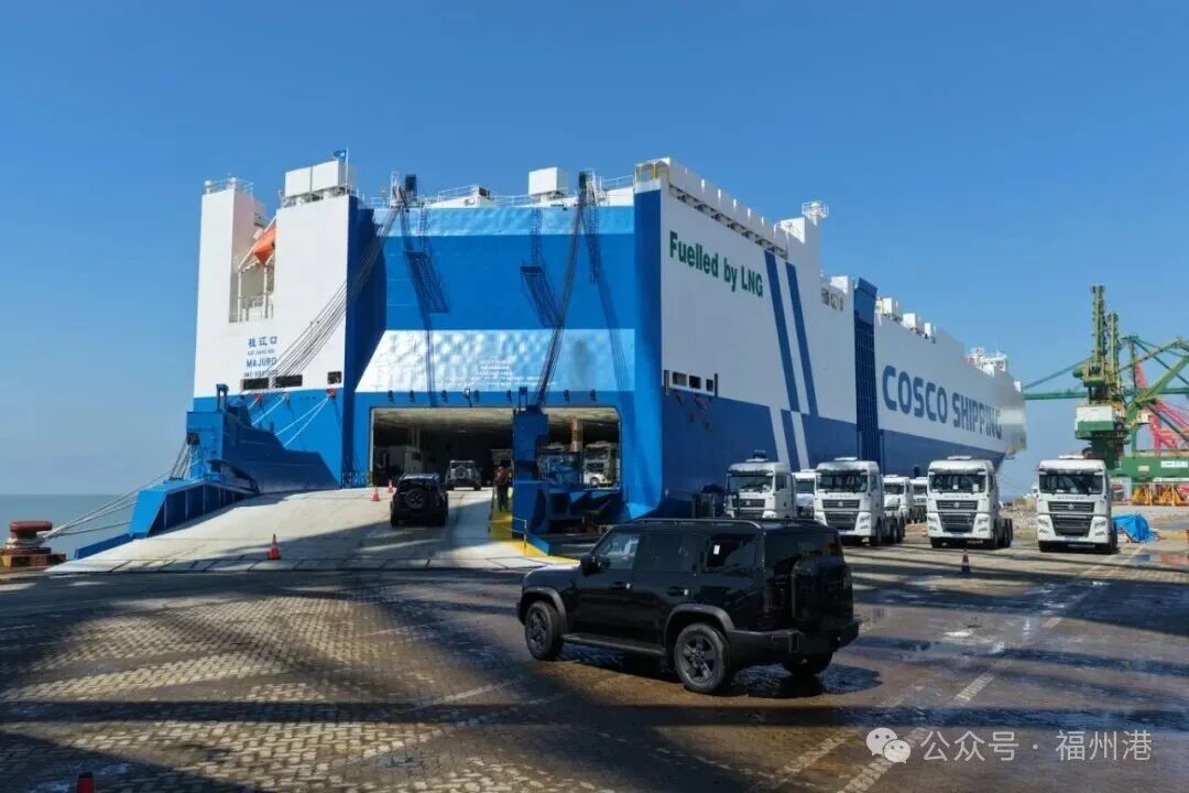 春潮拍岸,千帆竞渡。4月的福州港江阴港区,滚装作业一派繁忙——“桂江口”号装载1268辆“福建造”汽车刚刚驶离码头、奔赴南非,“黄河口”号便接续靠泊,608台整车鱼贯而入、整装待发。两船接连作业、紧凑衔接,滚装出口的热度从一季度延续至今。这繁忙有序的一幕,正是福州港“一江两翼”全域发力、首季“开门红”的生动缩影。